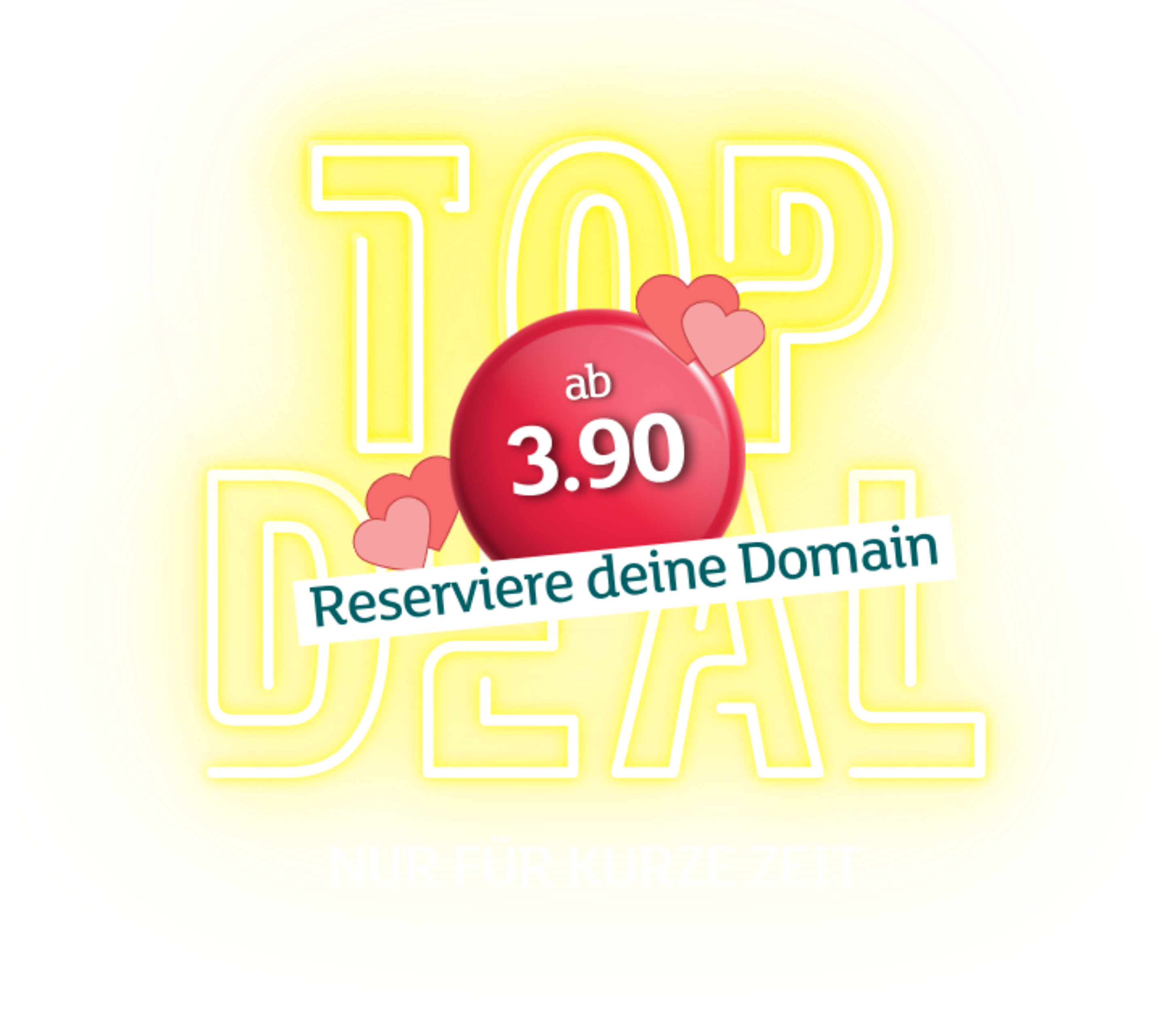 * Diese Promotion gilt für bezeichnete Domains für eine Mindestvertragsdauer von 12 Monaten. Im Anschluss an das erste Vertragsjahr wird der normale Jahrespreis verrechnet.