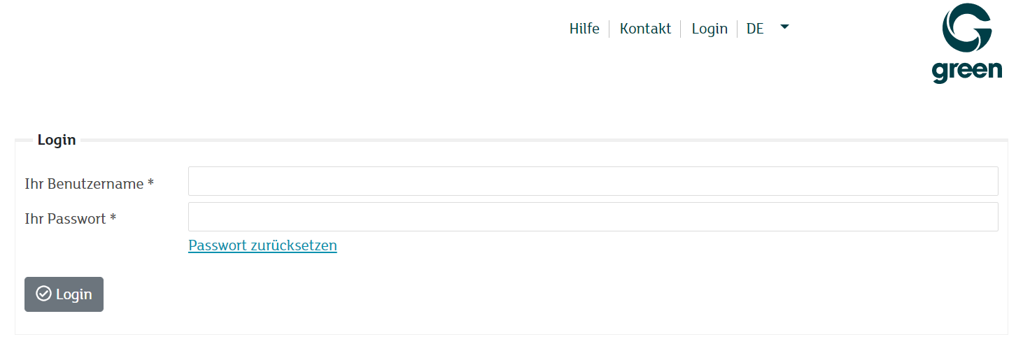 Melden Sie sich in das my.green.ch Kundenportal an mit Ihrem MY-Benutzer und dazugehörigem Passwort.
