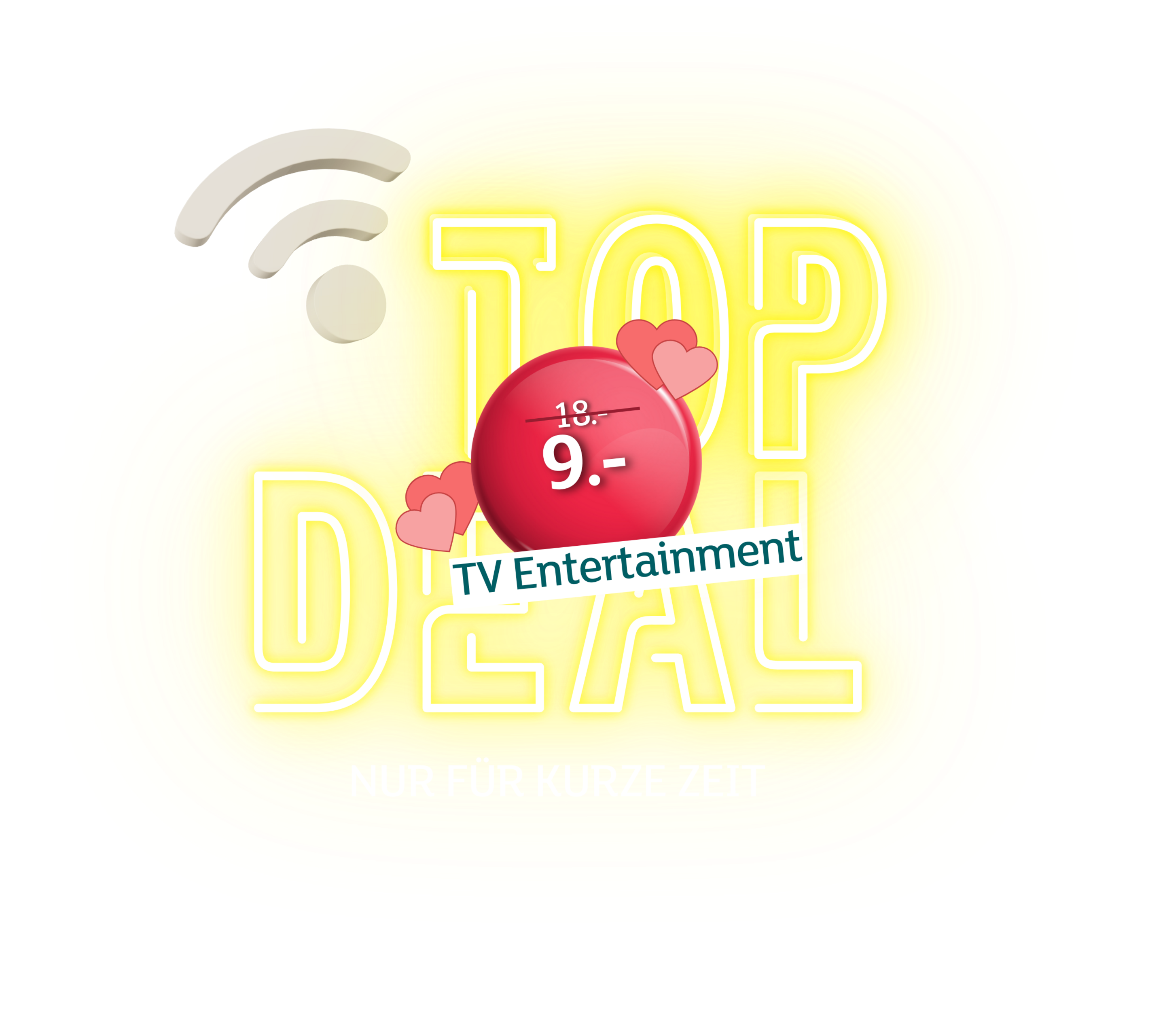 - TV Box (one-time fee CHF 99.-), which is connected to the router (LAN) and to the TV (HDMI) via cable.