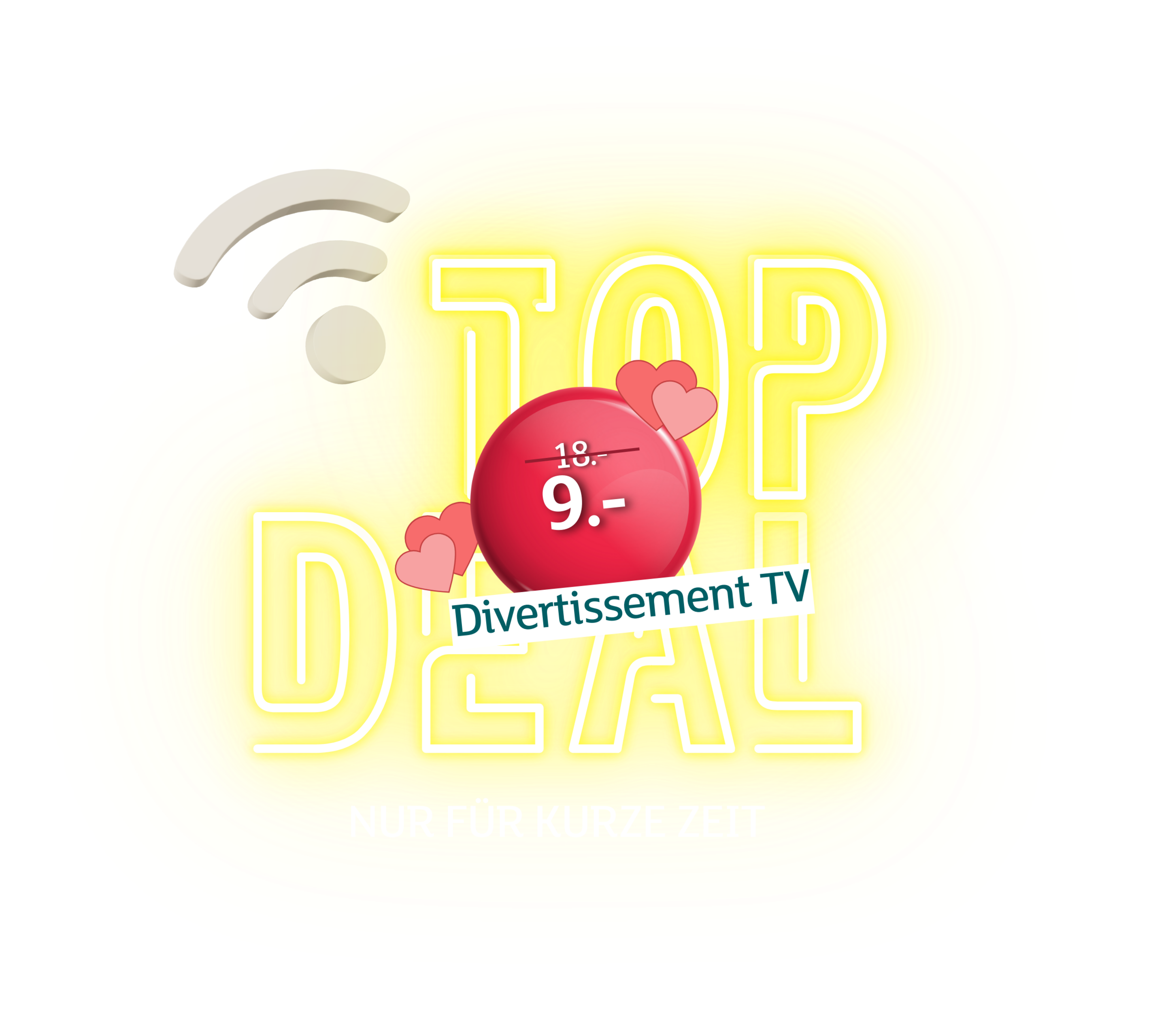L’offre est valable jusqu’au 08.03.2026 pour toute nouvelle souscription TV Comfort. Pendant les 18 premiers mois, vous bénéficiez d’un abonnement à un prix promotionnel. Ensuite, le prix normal s’applique. La durée minimale du contrat est de 24 mois. La promotion est valable pour les nouveaux clients et n’est pas cumulable avec d’autres promotions. Sous réserve de modifications.